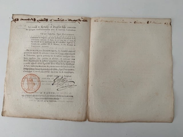 Paris Imprimerie Nationale Exécutive du Louvre. 1792. 4 pages (2 pages texte) 21x26 cm Loi No. 1661