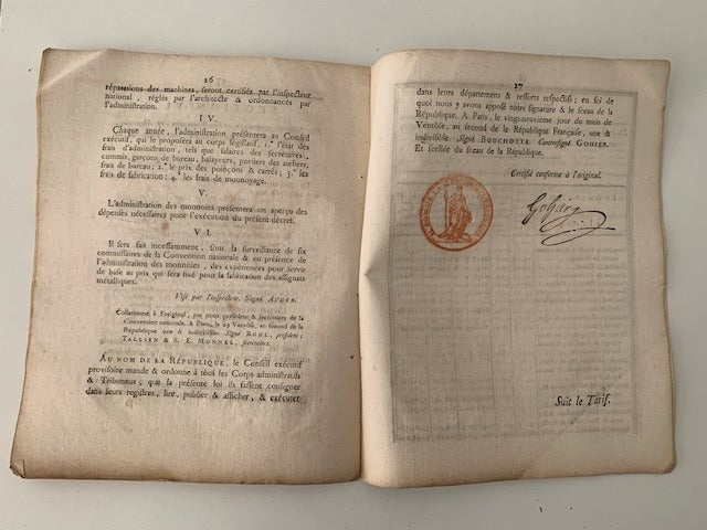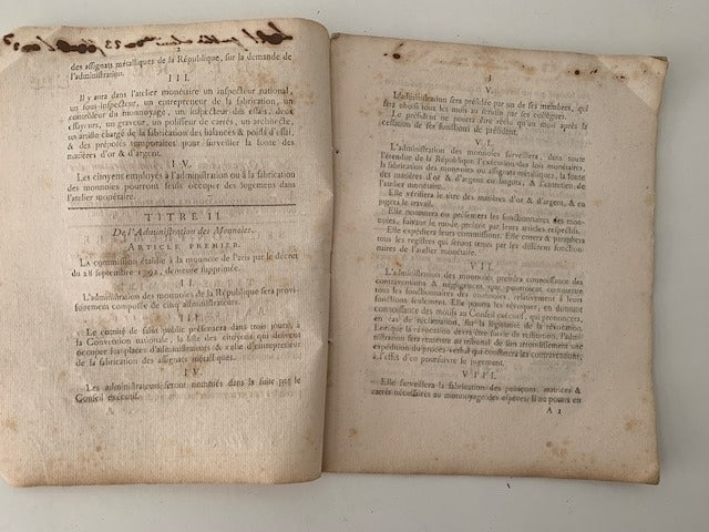 Décret de la Convention Nationale ... Sur l'Organisation de l'Administration des Monnoies