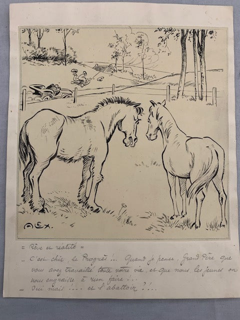 Alex [Alex Hallez] : Dessin original signé 'Rêve et Réalité'