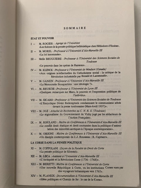 Rogier; Morel; Brugière; Klinck; Ganzin e.a. : Etat et pouvoir. La Corse dans la pensée politique. Actes du Colloque de Bastia (26 27 28 avril 1984)