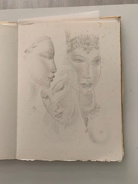 Paris aux dépens d'un groupe d'amateurs. 1951. Imprimé sur les Presses de Raymond Jacquet. Un des 150 exemplaires sur Papier Royal de Rives. Numéro 23. Signé par Paul Claudel 8 dessins originaux d'Emilienne Milani (petite différence dans les dessins pour chaque exemplaire) Nous joignons une lettre autographe signé de Paul Claudel avec enveloppe adressé à Emilienne Milani Musée Cantini Marseille. Une affiche exposition 'Misères' Galerie E. Bresset Paris et Marseille 6 dessins d'Emilienne Milani et quelques documents Portfolio avec dessin original tâches (voir photo) premier dessin avec des rousseurs sinon bon état Emilienne Milani né en 1908 à Marseille - 2009 Saint-Didier-de -la-Tour