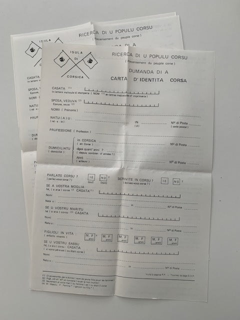 Bastia U.P.C. Unione di u Populu Corsu 1977. 64 pages. Broché. 13 5x19 4 cm. Bon état Bien complet avec la lettre de l'U.P.C. au Président de la République et trois questionnaires pour la carte d'identité corse